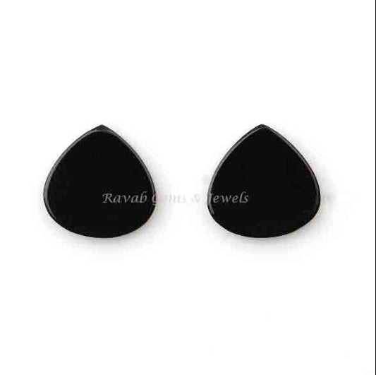 Black Onyx Heart Shape 12mm Flat Stones, Gemstone For Jewelry Making, Loose Beads Smooth Calibrated Earring Stones, Flat Pair 2 Pcs Set