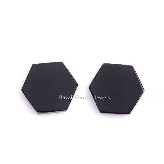 Black Onyx Hexagon Shape Flat Smooth Gemstone, Loose Beads Calibrated Stone For Jewelry Earring Making 2 Pcs Set All Size Available