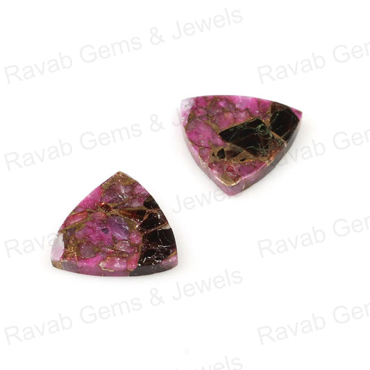 Black & Pink Copper Turquoise 12mm Trillion Shape Flat Gemstone, Calibrated Loose Beads Semi Precious Stone For Jewelry Making - 2 Pcs Set