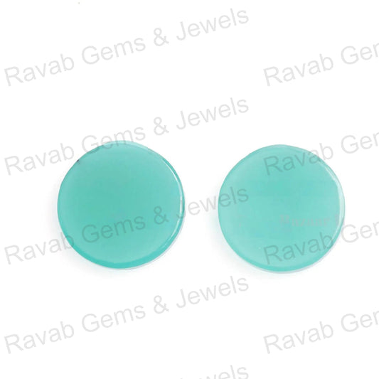 Aqua Chalcedony Round Shape Flat Gemstone, Loose Beads Calibrated Stone For Jewelry Earring Ring Pendant Making 8mm-16mm 2 Pcs All Sizes