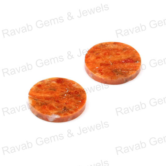 Apple Coral Copper Coin Shape 12mm Both Side Flat Gemstone, Calibrated Stones For Jewelry Earring Making, Pair Stones For Sale 2 Pcs Set