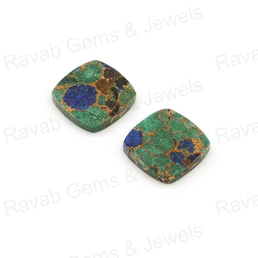 Azurite Copper Cushion Smooth Flat Gemstone, Best Quality Loose Beads Stone For Jewelry Earring Making -12mm 2 Pcs Set All Size Available