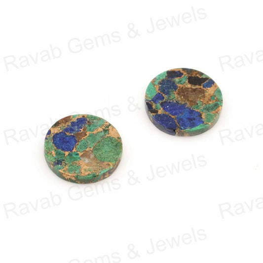 Azurite Copper Round Coin Shape Both Side Flat Gemstone, Loose Beads Calibrated Stone For Jewelry Earring Ring Making 2 Pcs Set All Sizes