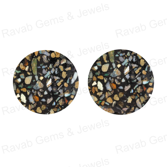 Black Ethiopian Opal Composite, Round Coin Both Side Flat, Loose Gemstone, Semi Precious Stone, Calibrated Smooth, For Jewelry Earring 2 Pcs
