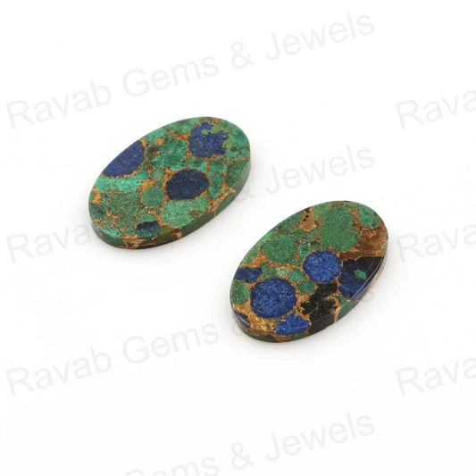 Azurite Copper Oval Shape Smooth Flat Gemstone For Jewelry, Copper Azurite Stone For Pendant Ring Earring 12x19mm 2 Pcs Set All Sizes