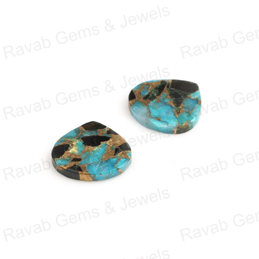Black And Blue Copper Turquoise Heart Shape Smooth Flat Gemstone, Calibrated Loose Beads Stone For Matching Jewelry Earring - 2 Pcs Set