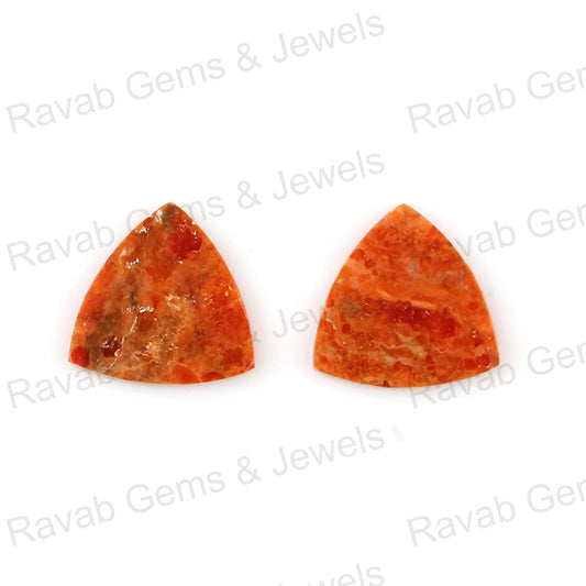 Apple Coral Copper 12mm Trillion Shape Flat Gemstone, Calibrated Stones For Jewelry Making, Pair Stones For Earring Making- 2 Pcs Set