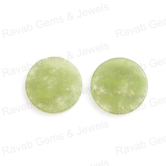 Beautiful Natural Jade Green Round Coin shape 12mm Flat Gemstone Calibrated, Natural Jade Green Jewelry making beads 2 pcs set