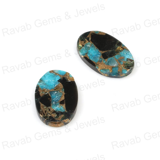 Black And Blue Copper Turquoise Oval Shape 12x19mm Both Side Flat Gemstone For Jewelry, Amazing Quality Stone For Jewelry Earring 2 Pcs Set