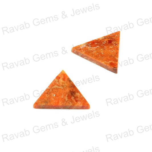 Apple Coral Copper Triangle Shape Smooth Flat Gemstone, Calibrated Loose Beads Stone For Jewelry Earring Makin- 2 Pcs Set All Size Available