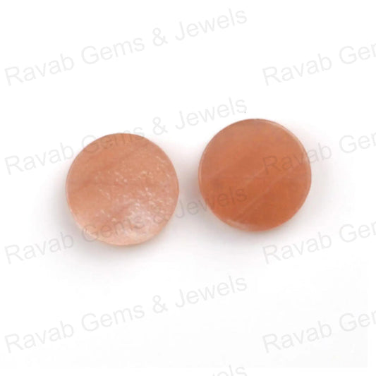 Beautiful Peach Moonstone Round Coin shape 12mm Flat Gemstone Calibrated, Peach Moonstone Jewelry making beads 2 pcs set