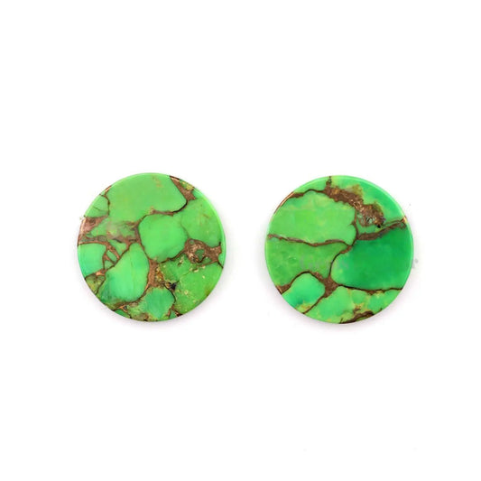 Beautiful Green Copper Turquoise Coin shape 12mm Flat Gemstone Calibrated Cabochons, Green Copper Turquoise Cabochons loose gemstone 2 pcs