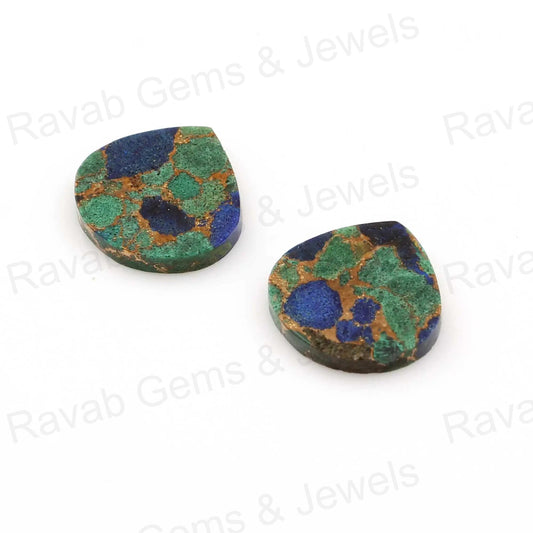 Azurite Copper Heart Shape Both Side Flat Gemstone For Pendant, Loose Beads Calibrated Semi Precious Stone 2 Pcs Set All Sizes Available
