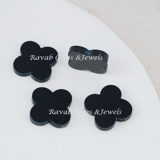 Black Onyx, Clover Both Side Flat, Loose Gemstone, Four Leaf Wholesale Supplier, Semi Precious Stone, For Making Jewelry, All Size Available