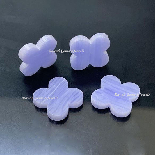 Blue Lace Agate, Clover Both Side Flat, Loose Stone, Four Leaf Wholesale Supplier, Semi Precious Stone, For Making Jewelry, All Size Avail.