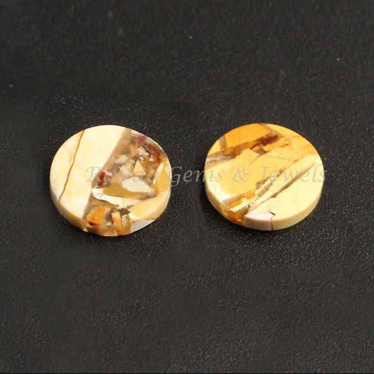 Brecciated Mookaite Jasper Round Coin shape 12mm Flat Gemstone for jewelry making, Jasper ring, pendant, earrings making beads 2 pcs set