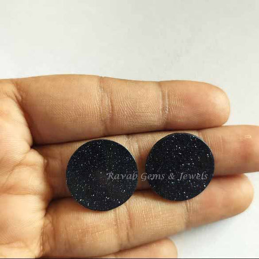 Blue Sunstone Coin Shape 12mm Flat Gemstone For Jewelry Making, Dazzling Loose Beads Sandstone For Matching Earrings 2 Pcs Set Available