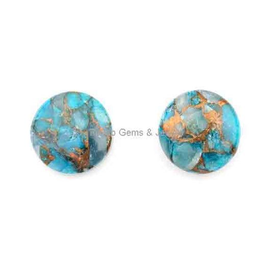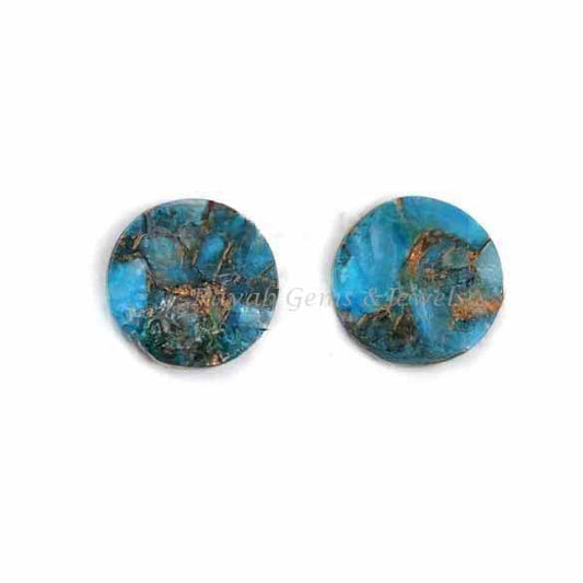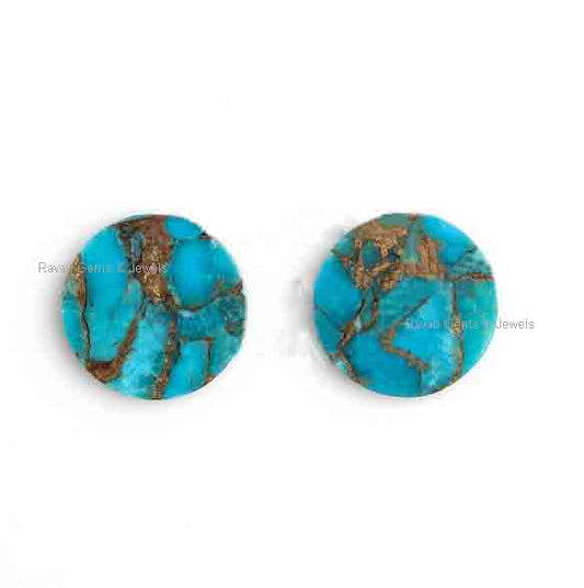 Blue Copper Turquoise Round Shape Flat Gemstone For Jewelry Making, Loose Beads Calibrated Stone Jewery Earring Making 2 Pcs Set Available