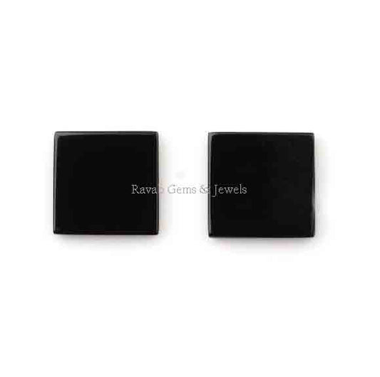 Black Onyx Square Shape Both Side Flat Gemstone, For Jewelry Making Ring Earring Pair, Loose Beads Callibrated Stone, 12mm 2 Pcs Set