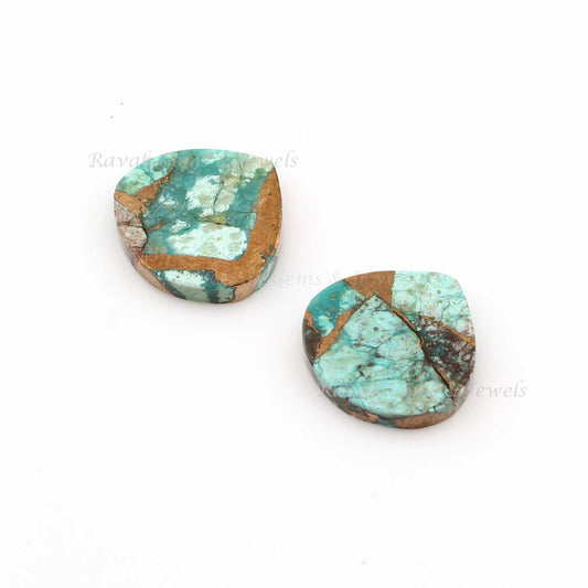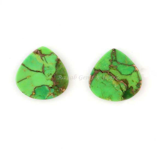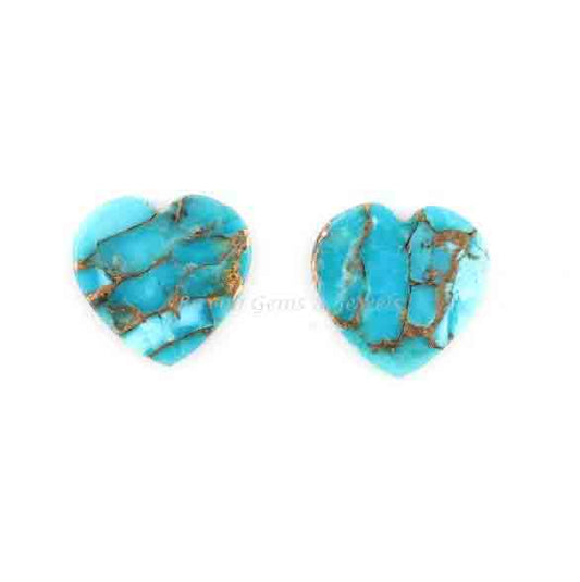 Copper Green Turquoise Heart Shape Smooth Flat Gemstone, Loose Beads Calibrated Stone For Jewelry Ring Earring Making 12mm- 2 Pcs Set