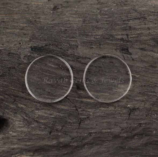 Crystal Quartz Round Coin shape 12mm Flat Gemstone for jewelry making, Crystal Quartz pendant, earrings making flat 2 pcs set