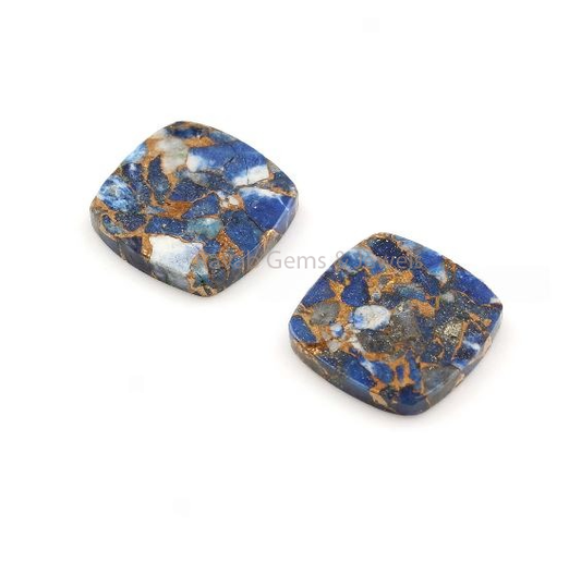 Copper Lapis Lazuli Cushion Flat Gemstone For Jewelry Making | Calibrated Loose Beads Stone For Jewelry 2 Pcs 12mm And All Sizes Available