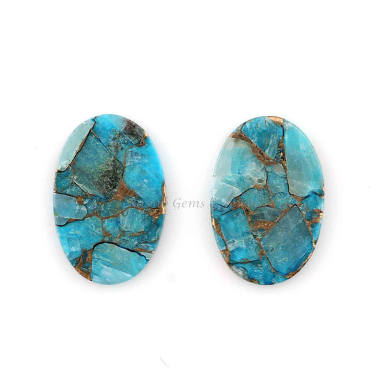 Blue Copper Turquoise Oval Shape 12x19mm Flat Gemstone, Calibrated Stones For Jewelry Making, Best Quality Stone For Earrings 2 Pcs Set