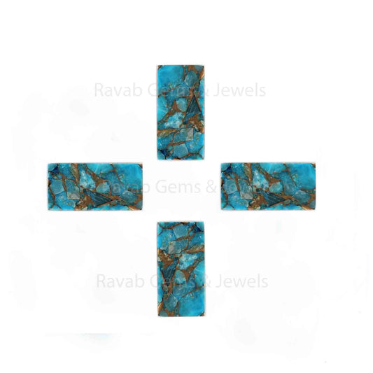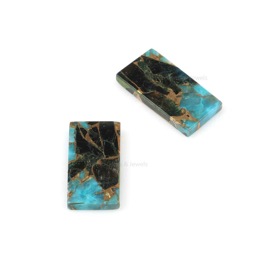 Blue Copper Turquoise Rectangle Shape Flat Gemstone, Loose Beads Calibrated Stone For Jewelry Earring Making 8x16mm 2 Pcs Set Best Quality