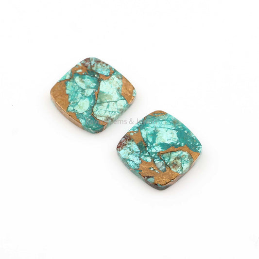 Copper Chrysocolla Cushion Shape Smooth Flat Gemstone, Loose Beads Calibrated Semi Precious Stone For Sale 12mm - 2 Pcs All Sizes Available