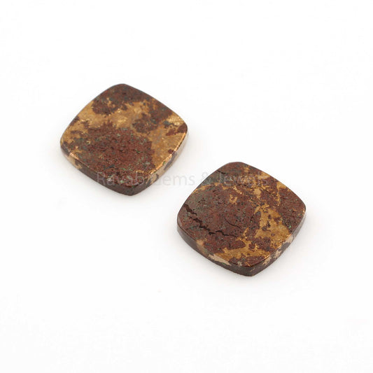 Brown Lava Copper Cushion Shape Flat Gemstone, Calibrated Loose Beads For Jewelry Making, Both Side Flat Pair Stone 12mm - 2 Pcs Set