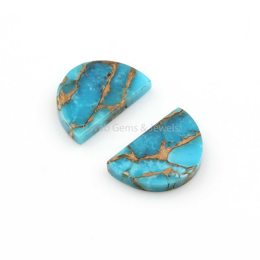 Blue Copper Turquoise 'D' Half Moon Shape, Both Side Flat Gemstone For Jewelry Earring Making Stones, Loose Beads Calibrated Stone 2 Pc Set