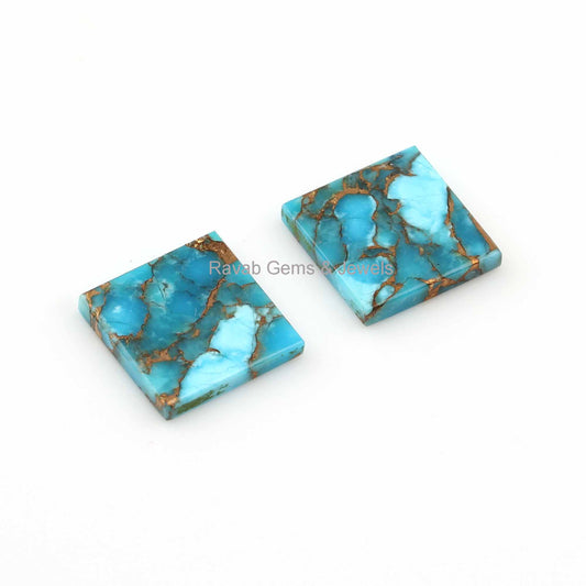 Blue Copper Turquoise Square 12mm Flat Gemstone, Calibrated Stones For Jewelry Earring Making, Bridesmaid Gifted Stones For Sale 2 Pcs Set