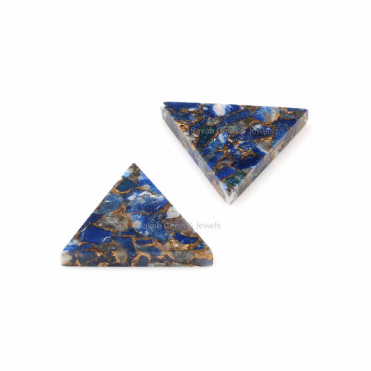 Copper Lapis Lazuli Triangle Shape Smooth Flat Gemstone For Jewelry Making | Loose Beads Calibrated 2 Pcs 12mm And All Sizes Available