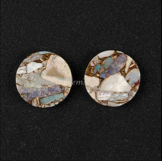 Ethiopian Opal Copper Composite Round Coin Both Side Flat Loose Gemstone Calibrated Semi Precious Stone For Jewelry Pendant Ring Making 2pcs