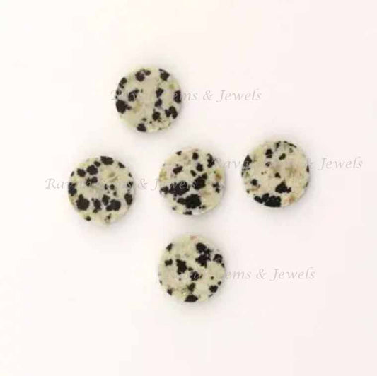 Dalmatian Jasper Round Coin shape 12mm Flat Gemstone for jewelry making, Dalmatian Jasper ring, pendant, earrings making beads 2 pcs set,