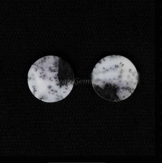 Dendritic Agate Round Coin shape 12mm Flat Gemstone for jewelry making, Dendritic Agate pendant, earrings making beads 2 pcs set