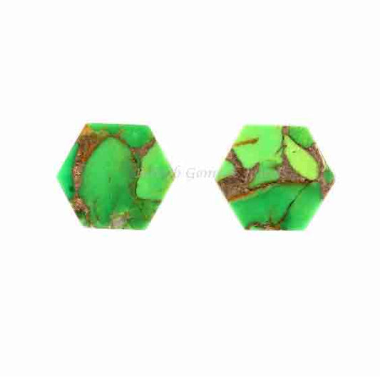 Green Copper Turquoise 12mm Hexagon shape Flat Gemstone, Loose Gemstone Both Side Flat, Green Copper Turquoise Flat - 2 Pcs set