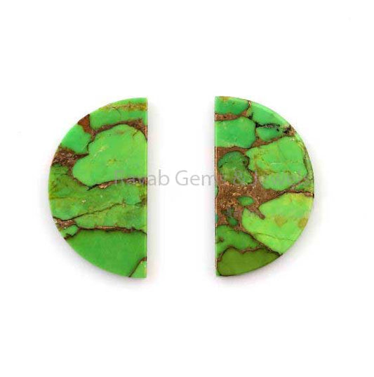 Green Copper Turquoise 'D' Half Moon Shape Flat Gemstone For Jewelry, Loose Beads Calibrated Stone For Matching Jewelry Earring 2 Pcs Set