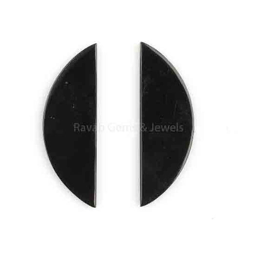 D Shape Natural Black Onyx Half-Moon Flat Gemstone, Loose Beads Calibrated Stones For Matching Earring Making 2 Pcs Set All Sizes