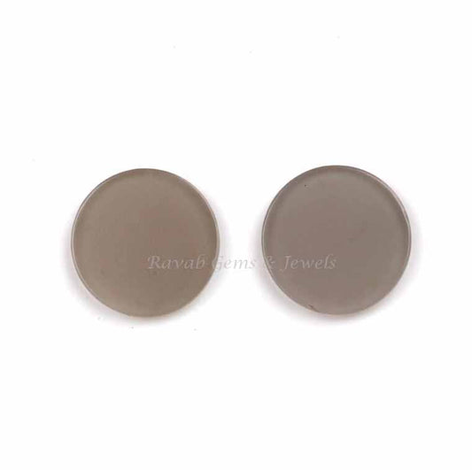 Gray Chalcedony Round Coin shape 12mm Flat Gemstone for jewelry making, Gray Chalcedony pendant, earrings making beads 2 pcs set