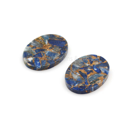 Lapis Lazuli Copper Oval Shape Smooth Flat Gemstone, Calibrated Loose Beads Stone For Matching Jewelry Making 12x19mm 2 Pcs Set All Sizes