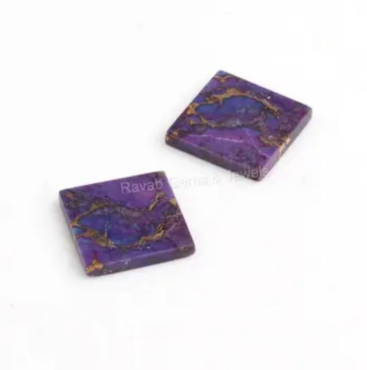 Mohave Purple Copper Turquoise Square Shape Flat Calibrated Gemstone, Loose Gemstone ForJewelry Making, Stone For Gifted 12mm 2 Pcs Set