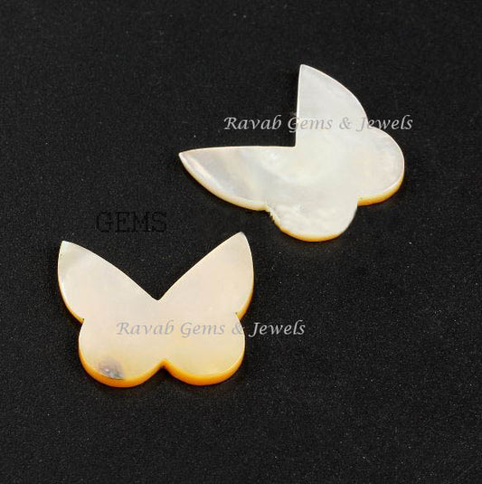 Mother of Pearl Butterfly Shape 21x23mm Flat Gemstone For Jewelry Making, Designer Loose Beads Stone For Fancy Jewelry Making 2 Pcs Set