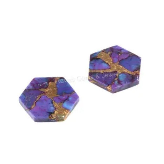 Mohave Purple Copper Turquoise Hexagon Shape Flat Calibrated Gemstone, Loose Beads Stone For Jewelry Ring Earring Making 12mm 2 Pcs Set