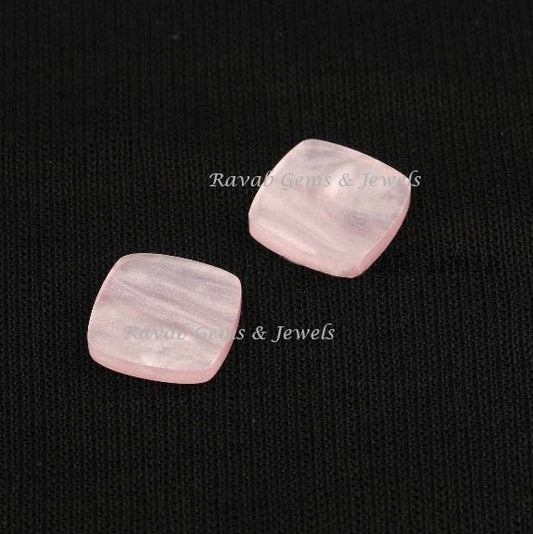 Mother of Pearl Cushion Shape Smooth Flat Gemstone, Loose Beads Calibrated Semi Precious Stone For Jewelry Earring Making 2 Pcs Set 12mm