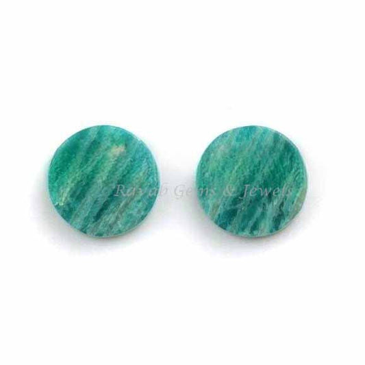 Natural Amazonite Round Coin Flat Gemstone For Jewelry Making, Loose Beads Calibrated Stone For Jewelry Earring Making 12mm 2 Pcs All Sizes