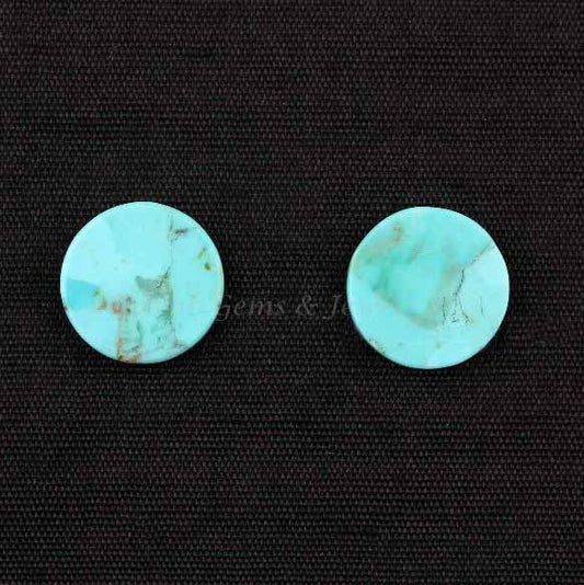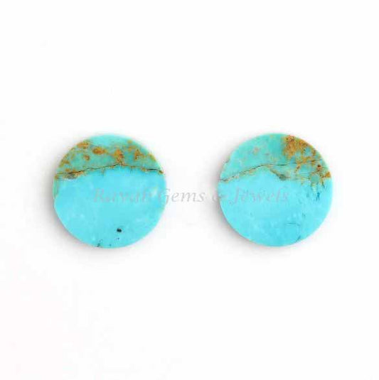 Natural Arizona Turquoise Round Coin shape 12mm Both side Flat Gemstone, Arizona Turquoise necklace, earring making beads 2 pcs set