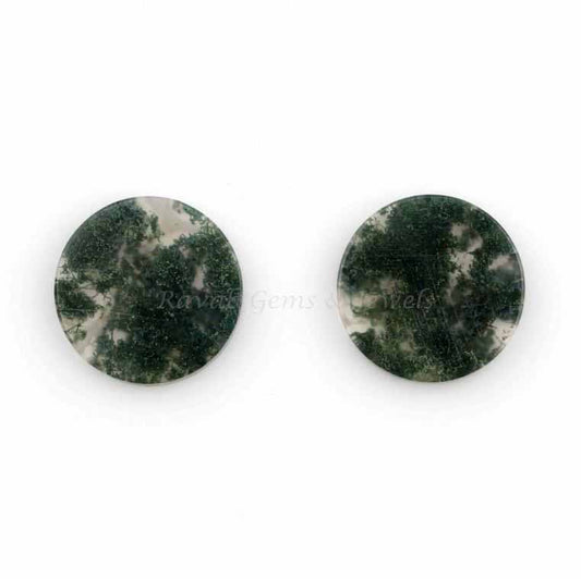 Moss Agate Round Coin Shape 12mm Both Side Flat Gemstone For Jewelry Making, Loose Beads Calibrated Stone For Earring Necklace Making 2 Pcs