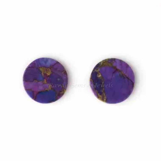 Mohave Purple Copper Amethyst Flat Smooth Round Shape Gemstone, Loose Beads Calibrated Stone For Jewelry Making, Stones For Earrings 2 Pcs