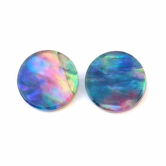 Multi Abalone Shell coin shape 12mm Flat Gemstone for jewelry making, Multi Abalone Shell pendant, earrings making beads 2 pcs set